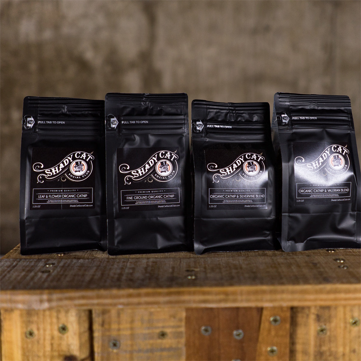 The Shady Cat Social Club offers various robust combinations of organic catnip and silver vine as part of our Feline Euphorics Collection.