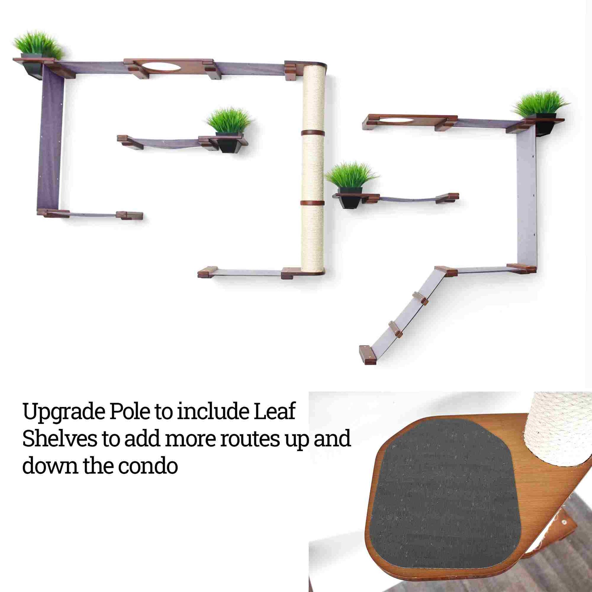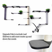 For smaller spaces, check out the Mini Garden version with two Planters, a Scratching Pole, Hammocks, and an Escape Hatch. For an extra touch of excitement, upgrade to our Leaf Shelves and watch your cats conquer new heights with ease!
